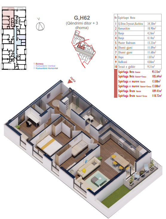 Apartment for Sale – 118.72 m² in Prishtina e re, “Malush Kosova” Street, SHIKI Complex. A modern, bright, and highly functional apartment located in Block G/H, 7th floor, entrance G/H–62. Positioned in a quiet and well-developed area, ideal for comfortable family living. 1 Living room with Kitchen 1 Hallway 1 Master bedroom 2 Bedrooms 1 Bathroom 1 Toilet 1 Storage room 1 Terrace 1 Green terrace A perfect home for families, offering a well-structured floor plan, natural light, and great access to all essential services in the area. 🏗️ The building will be completed in 2028. 📌 For more information or to schedule a visit, feel free to contact us!
