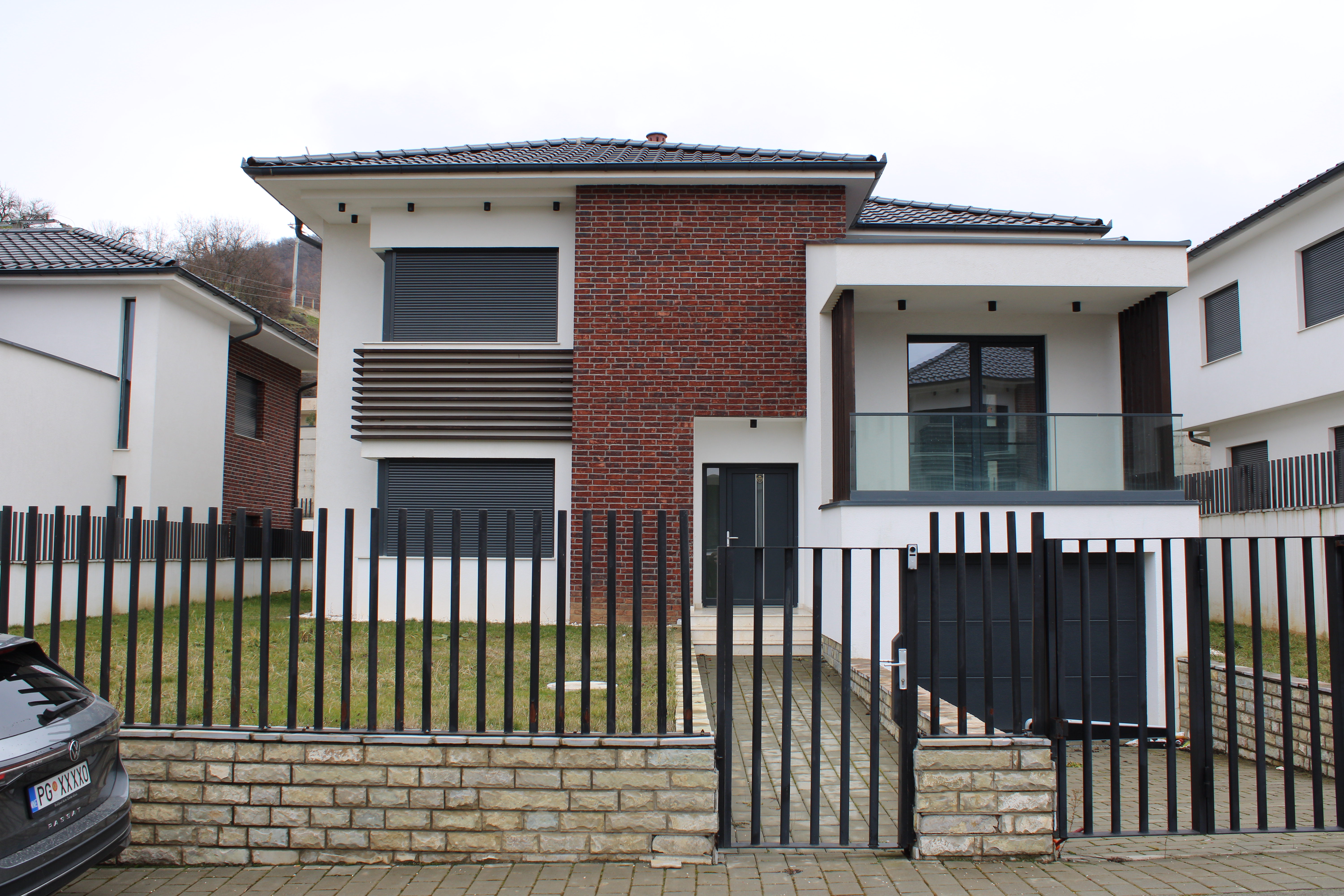 Modern and luxurious house for sale in the most desirable neighborhood of Pristina, Sofalia Hills, with a total area of 332 m² and an urban plot of 455 m². The location of the house offers a rare combination of tranquility and accessibility: away from the noise of the city, with fresh air and stunning views of the Gërmia hills, as well as open western exposure providing spectacular sunset views. It also offers easy access to all parts of Pristina. The main entrance is from the northern side of the plot, with planned infrastructure and safe sidewalks. The house has spacious and well-organized areas, arranged as follows: Layout of the Spaces: | Living Room | Kitchen with Dining Area | 3 Bedrooms | 2 Bathrooms | 1 Toilet | 2 Storage Rooms | 2 Terraces | Garage Key Features of the House: | Facade & Insulation: EPS + XPS, stone wool thermal insulation, decorative brick facade. | Roof: Engoba Black clay tiles (TONDACH). | Heating & Plumbing: Samsung heat pump, REHAU pipes, Xhakomini copper pipes. | Flooring & Stairs: 11 mm Egger laminate, ELAN tiles, TERRA STONE stairs. | Windows & Doors: ALUPLAST PVC thermally insulated windows, Lamex wooden interior doors, ThermoPro steel exterior doors. This property combines modern design, comfort, and high-quality construction, making it an ideal home for families looking for a luxurious and peaceful lifestyle in one of Prishtina’s most exclusive neighborhoods. 📌 For more information or to schedule a visit, contact us!