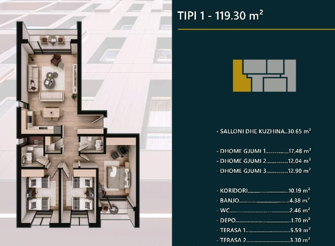 Shitet banesa prej 119.30 m² në kompleksin modern dhe shumë të kërkuar Hill Side në Prizren.