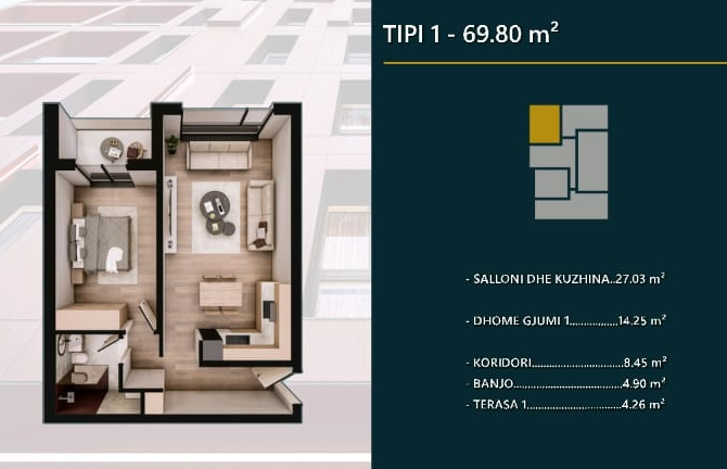 Shitet banesa prej 69.80 m² në Prizren, në kompleksin modern dhe shumë të kërkuar Hill Side.