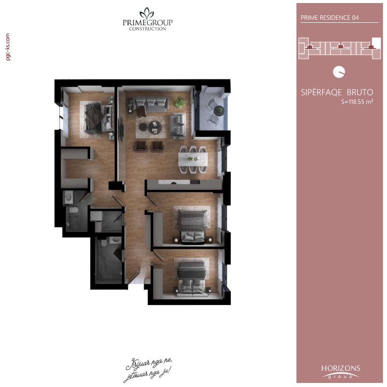 Shitet banesa me sipërfaqe 118.55 m², e vendosur në lagjen Prishtina e Re, në kompleksin Prime Residence.
