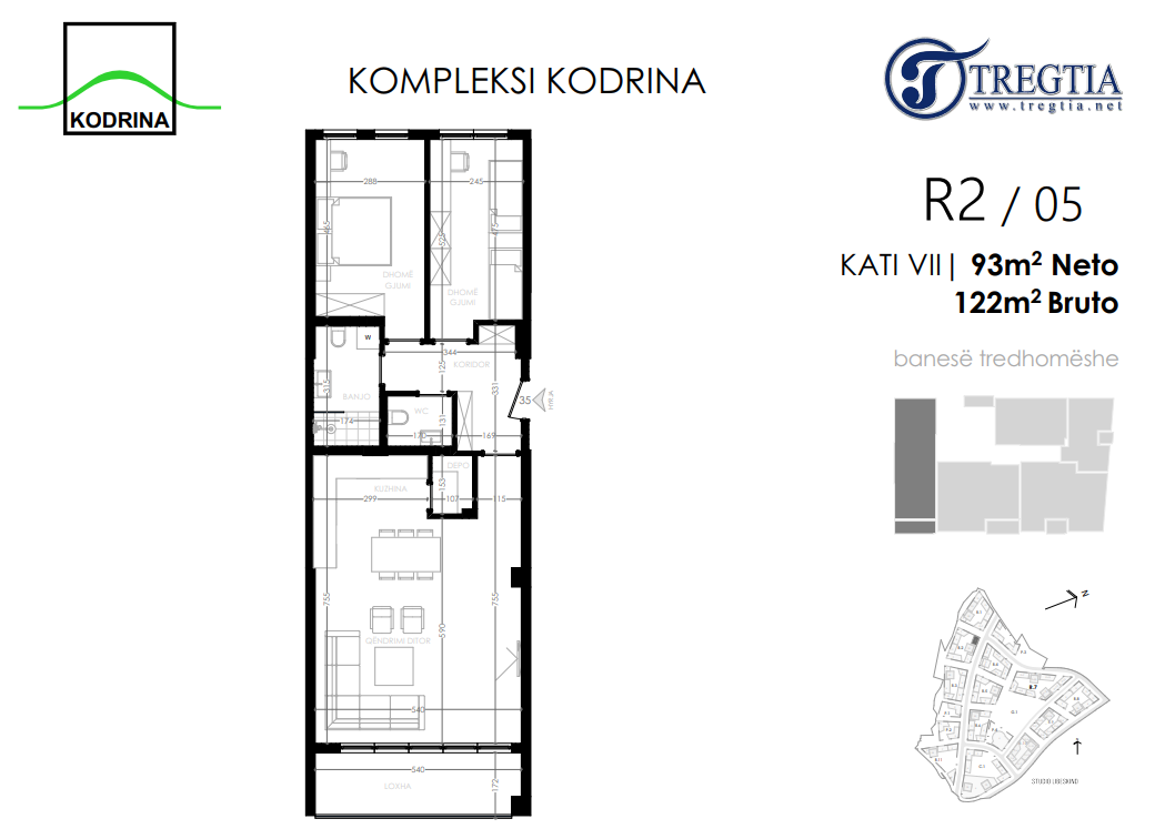 Shitet Banesa – Lagjja Kodrina, Kompleksi Tregtia. Shitet banesa me sipërfaqe prej 122 m² ne katin e 7, e cila gjendet në Lagjen Kodrina, brenda kompleksit “Tregtia”. Lokacion mjaft i favorshëm, i qetë dhe i përshtatshëm për familje, afër të gjitha shërbimeve të nevojshme. 1 Qëndrim ditor me kuzhinë 3 Dhoma gjumi 1 Banjo 1 Tualet 1 Hapësirë ndihmëse Banesë me organizim të mirë të hapësirës dhe shumë komode për jetesë familjare. 🏗️ Objekti përfundon në vitin 2028. 📌 Për më shumë informata ose vizitë në pronë, na kontaktoni!